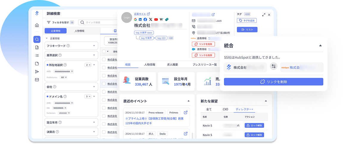 業界トップレベルのデータ量と質で、すべての営業プロセスを最適化します 。